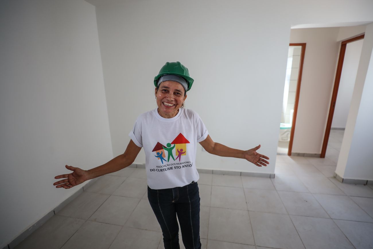 Rozineide Miranda, conhecida como Dinha, presidente da associação dos moradores que receberão as unidades habitacionais