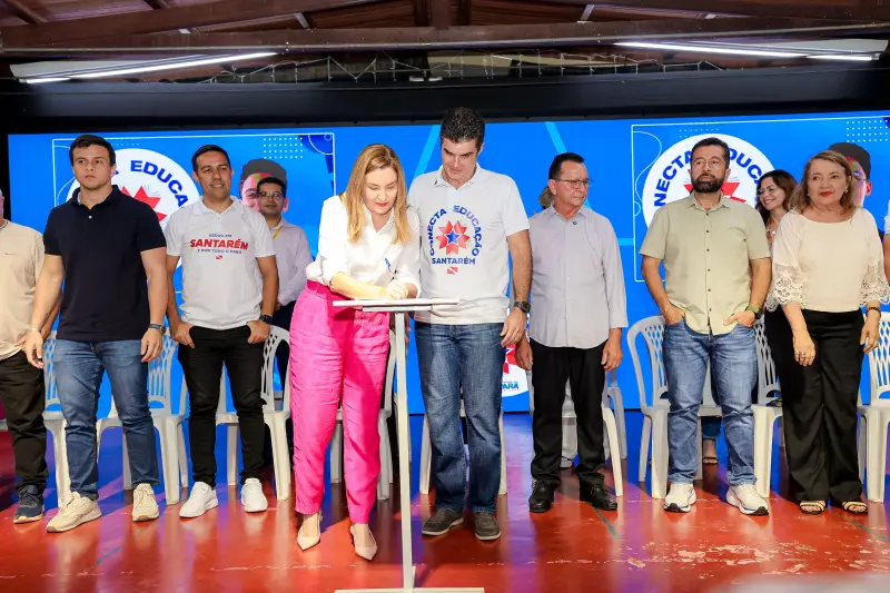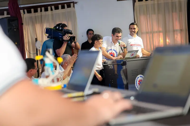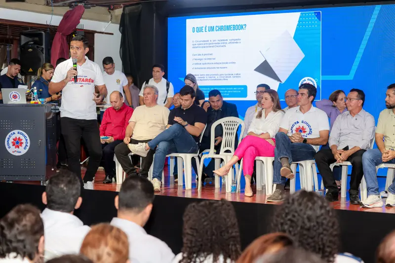 Entrega de Computadores do programa conecta Educação / assinatura de os para construção do prédio da Semas