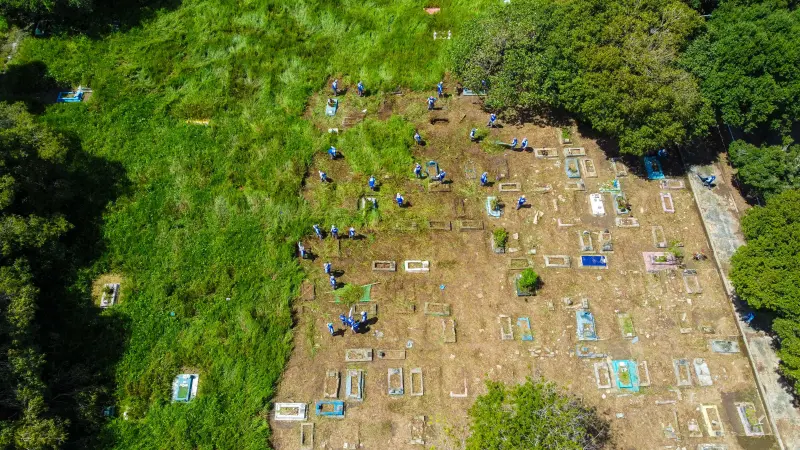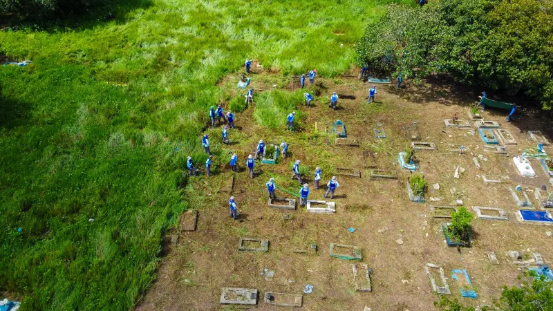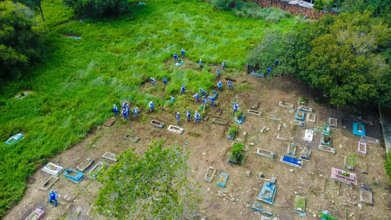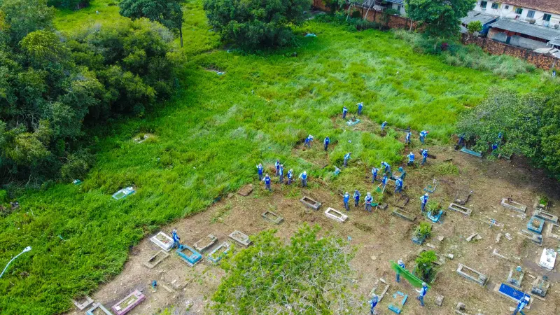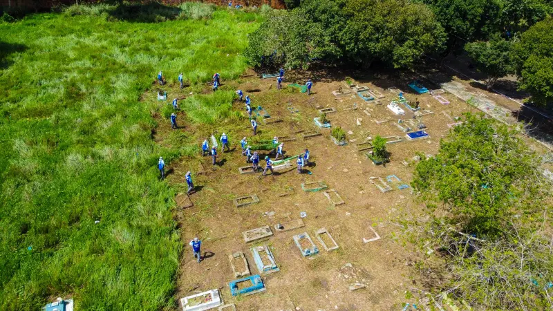 Custodiados da Seap realizam ação de limpeza no cemitério do Tapanã