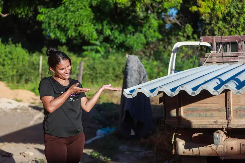 Sua Casa: Keilyany Lázara Nunes de Alencar, feliz com a chegada das telhas