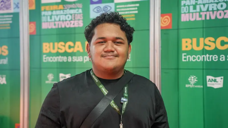 Clebson Ribeiro, 20 anos - aluno da turma de pedagogia Unama Ananindeua - 1° vez na Feira do Livro