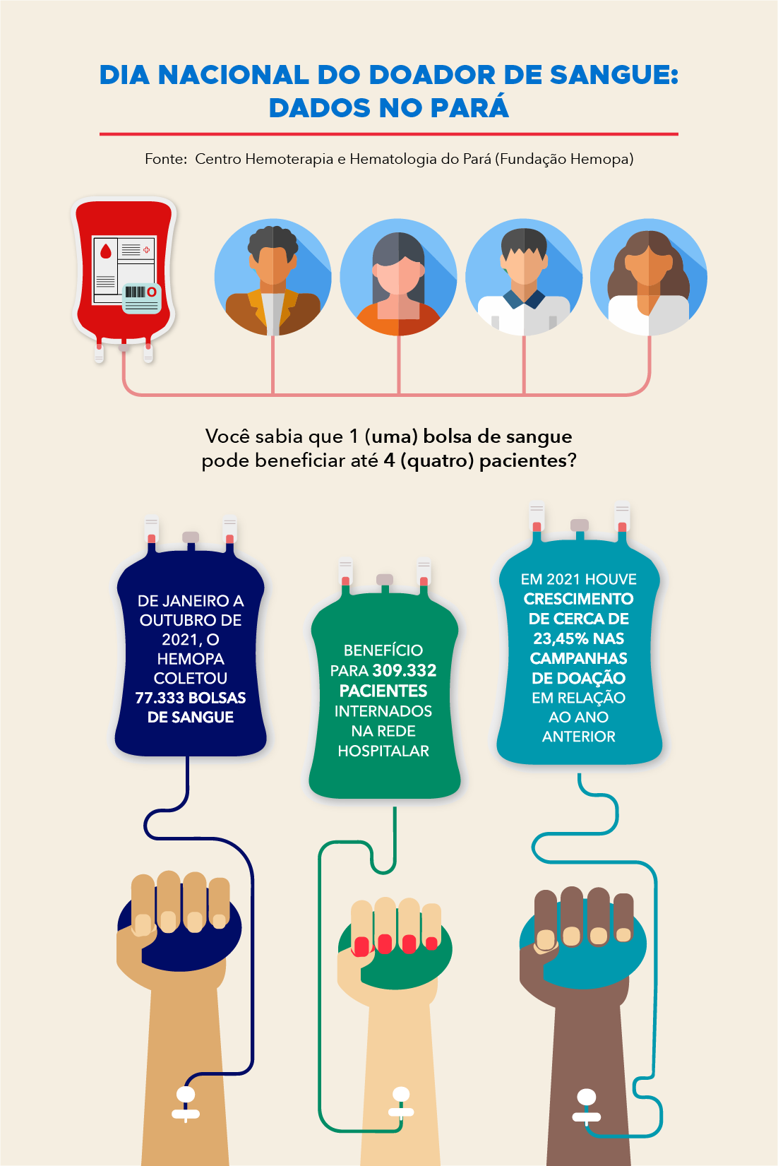 Para doar é simples. Os interessados precisam seguir os critérios básicos: ter entre 16 e 69 anos, (menores de idade devem estar acompanhados do responsável legal); pesar mais de 50 kg; estar em boas condições de saúde. No momento do cadastro, é obrigatório apresentar um documento de identificação oficial, original e com foto (RG, CNH), passaporte ou carteira de trabalho).