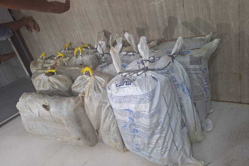 O material apreendido foi encontrado em 22 sacas, localizada em um dos porões da embarcação. Durante a abordagem da equipe, foram apresentados documentações que não eram compatíveis com a carga transportada, além de que foi identificado pelas equipes que o material estava sendo acondicionado inapropriadamente, em desacordo com as medidas sanitárias.