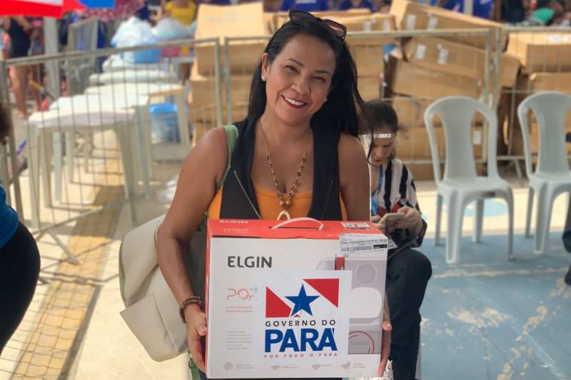 Empreendedorismo – Todas as entregas foram do Governo do Estado, por meio da Fundação ParáPaz, de forma gratuita e já contemplou milhares de famílias durante as ações. Ao total, foram 7.900 cestas de alimentos; 1.350 kits enxoval e carrinhos de bebê para gestantes; e 2.650 máquinas de costura, incentivando o empreendedorismo feminino, como ressaltou a artesã Patrícia Ribeiro.