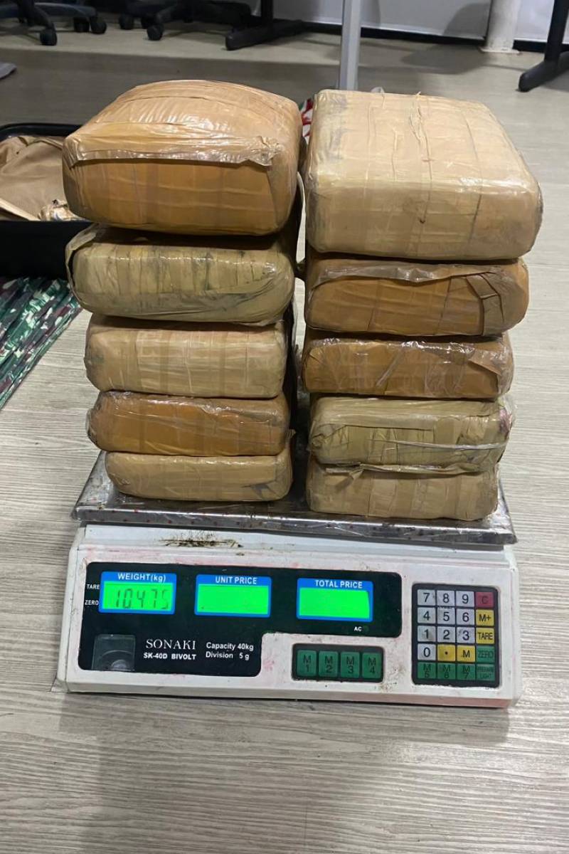 Os agentes inspecionaram uma embarcação denominada “Itaberaba”, durante a passagem pelo furo do Rio Tajapuru, em Breves, onde está instalada a Base Fluvial. A embarcação saiu de Manaus com destino à Belém. Durante as fiscalizações nos espaços da embarcação e com os passageiros, a equipe policial, com o auxílio do cão farejador Jay-z, identificou aproximadamente 10,475kg da super maconha “skunk”, dentro de uma mala.