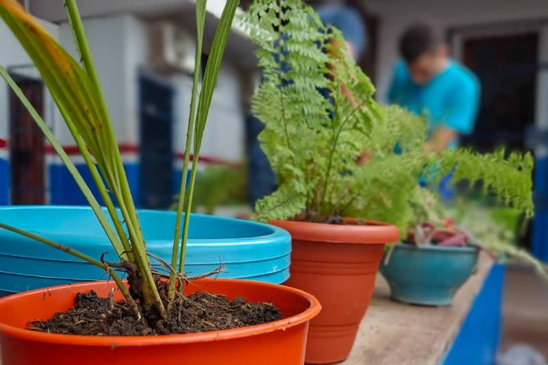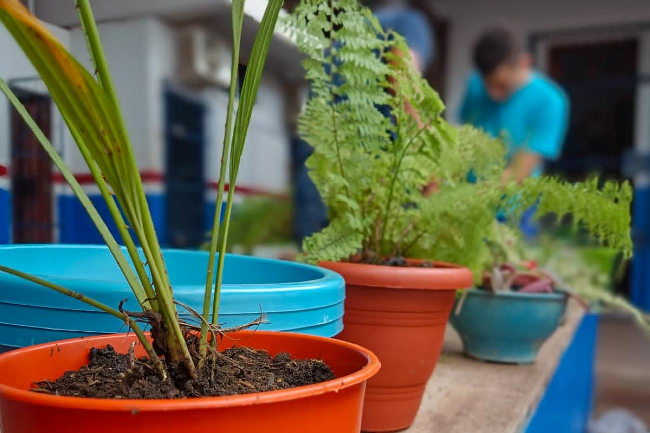 A ação tem deixado os espaços e jardins do Cseba mais humanizados e bem cuidados, estimulando as habilidades e técnicas do trabalho e cuidado com o meio ambiente. Essa é uma das oficinas realizadas pelo Cseba a fim de promover o desenvolvimento profissional e a ressocialização dos adolescentes.