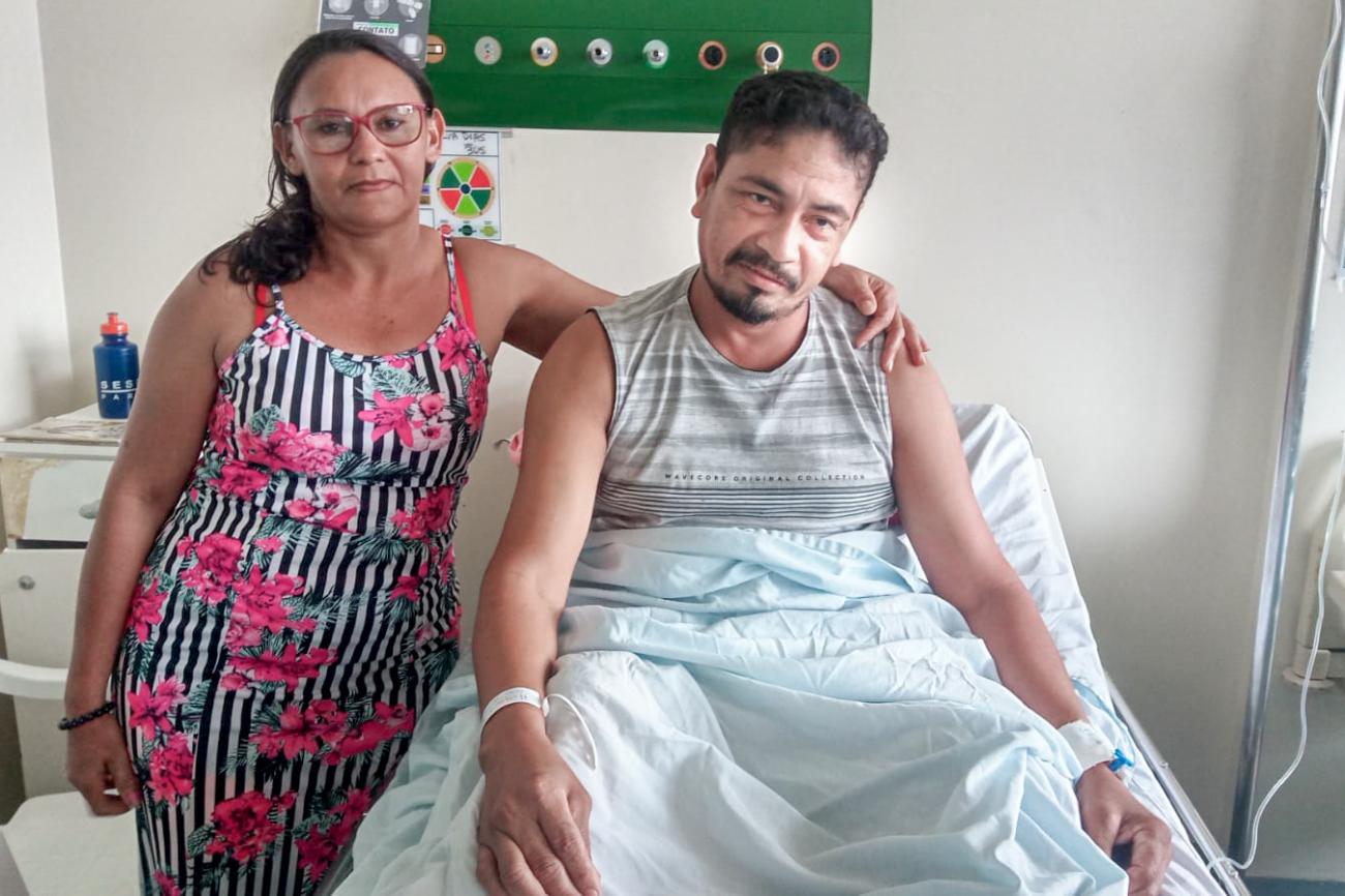 Aprovação – O agricultor Elênio Dias, 44 anos, residente do município de Tomé-Açu, o nordeste paraense, a mais de 180 quilômetros de Ananindeua, sofreu um acidente na área rural, que afetou sua perna esquerda. Para ele, “o primeiro passo para cuidar da saúde é com vacinação. Me sinto mais seguro em saber que o HMUE promove campanhas de imunização para sua equipe. Aqui, graças a Deus, estou sendo bem atendido”.