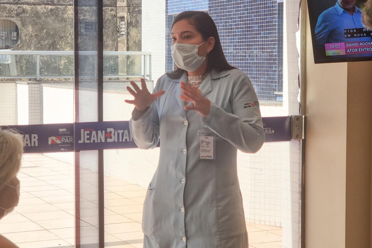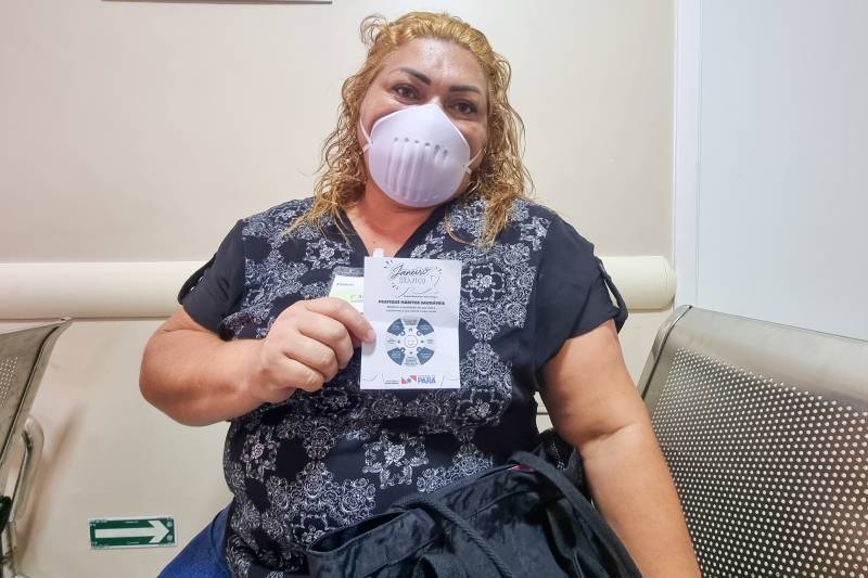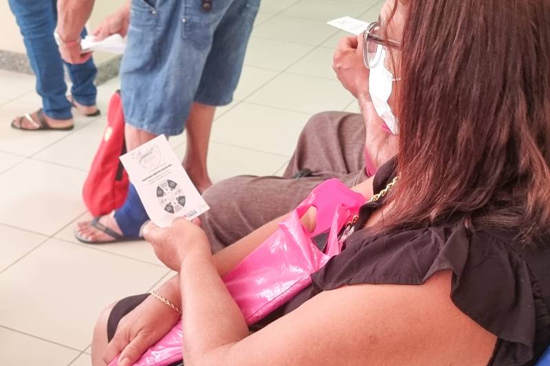 A cabelereira de 42 anos, Gisele Alfaia, que mora em Belém, estava na Recepção Ambulatorial para a sua primeira consulta pré-cirurgia bariátrica e teve a oportunidade de assistir a palestra.