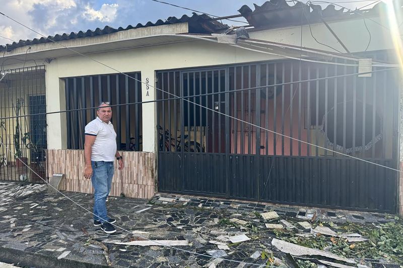 No Conjunto Pedro Teixeira, a casa do taxista Renato Fabiano da Frota Costa foi totalmente destelhada. “Foi um susto grande, a nossa sorte é que ninguém ficou ferido e agora com essa ajuda que está vindo do Governo vai ser muito bom para gente”, diz o aposentado.