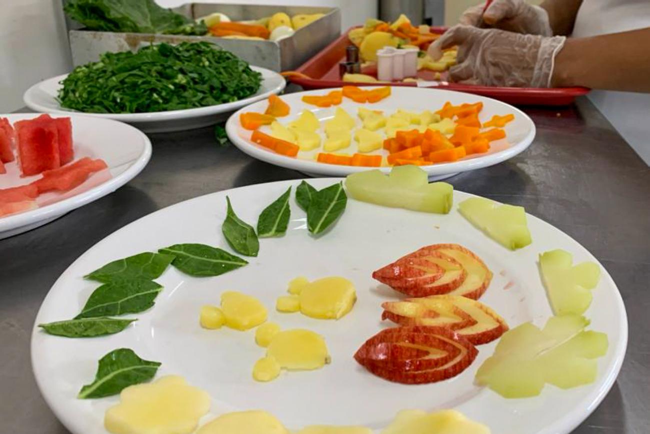 Elaborada pelo serviço de nutrição do hospital, a estratégia de combinar grãos, proteínas, legumes e frutas, de uma forma lúdica, tem contribuído para que as crianças consumam os alimentos de cardápio saudável sem reclamar.
