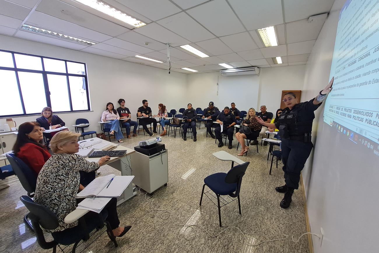 A Secretaria de Estado das Mulheres (Semu) promoveu a terceira reunião da Câmara Técnica Interinstitucional de Gestão das Políticas Públicas para as Mulheres, abordando o eixo da segurança. O encontro, na última terça-feira (16), reuniu representantes da Secretaria de Estado de Segurança Pública e Defesa Social (Segup), Polícia Civil, Polícia Militar e guardas municipais de Belém, Ananindeua, Marituba e Benevides - municípios da Região Metropolitana.