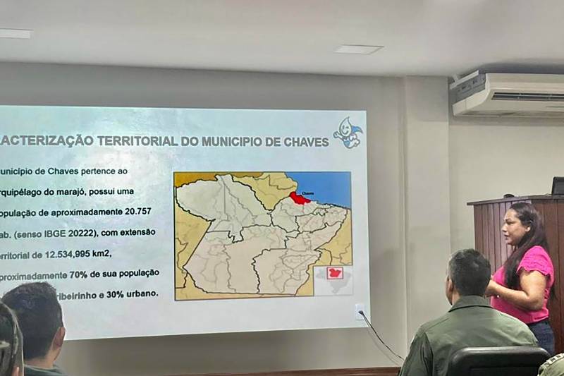 Michelly Souza apresenta informações sobre o município de ChavesA Secretaria de Estado de Saúde Pública (Sespa) participou, nos dias 17 e 18 de janeiro, na Base Aérea de Manaus, da reunião de planejamento e articulação da Missão Gota 2024, que deverá ocorrer nos meses de maio e junho no Pará. O objetivo é atualizar o esquema vacinal de crianças, adolescentes, adultos e idosos em áreas de difícil acesso na região amazônica.