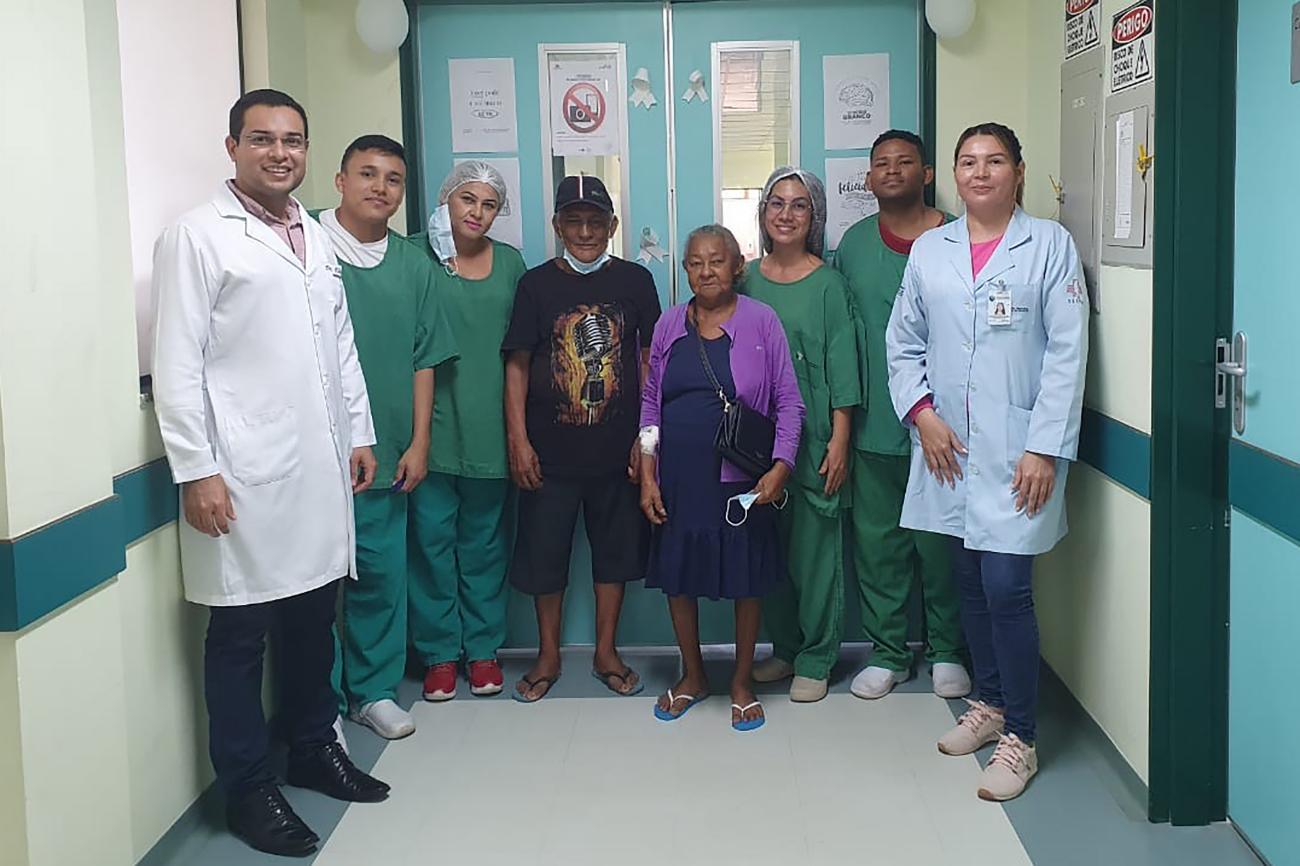 De janeiro a dezembro de 2023, o Centro de Hemodiálise da unidade propiciou quase 5.200 sessões para a população marajoara. Desde o início do Serviço de Hemodiálise, até dezembro do ano passado, o Hospital Regional Público do Marajó realizou mais de 10.300 sessões.Equipe do Centro de Hemodiálise do HRPM com a usuária Leonor dos Santos e seu marido, Manoel de Albuquerque