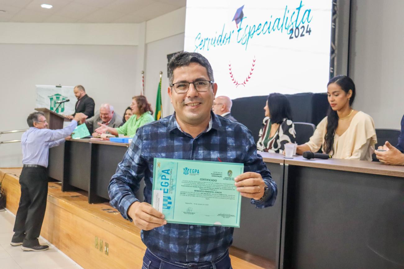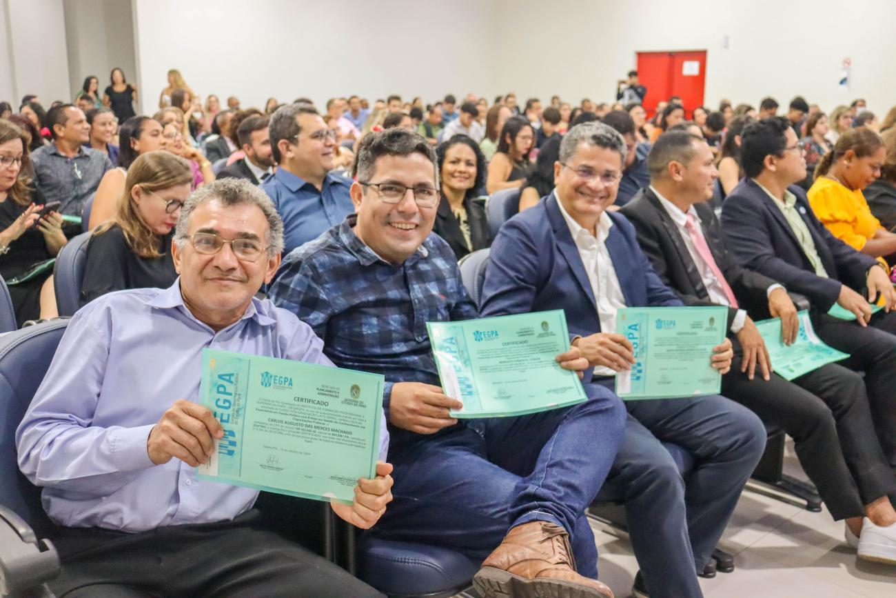 Na última quarta-feira (24), 75 servidores públicos estaduais receberam o certificado de conclusão do curso de especialização em Gestão Pública com ênfases em ‘Políticas Públicas e Governança’ e ‘Gestão do Conhecimento’. A formação, ofertada pelo Governo do Pará por meio do Instituto de Formação Profissional e Superior (Iseg) da Escola de Governança Pública do Estado do Pará (EGPA), teve a duração de 18 meses.