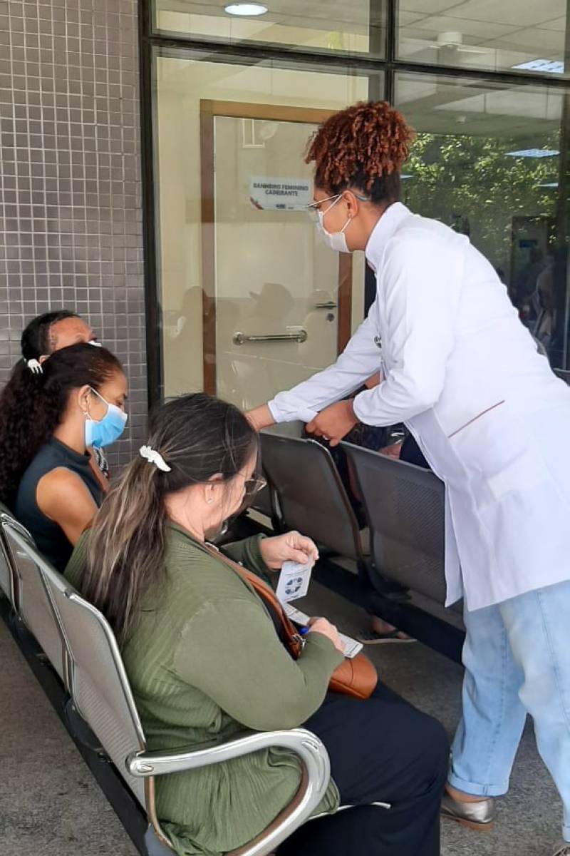 Quando chegou à unidade, Rosiane da Silva logo se deparou com a equipe e ficou atenta às orientações. Ela estava acompanhando o filho em uma consulta de retorno de pós-cirurgia.