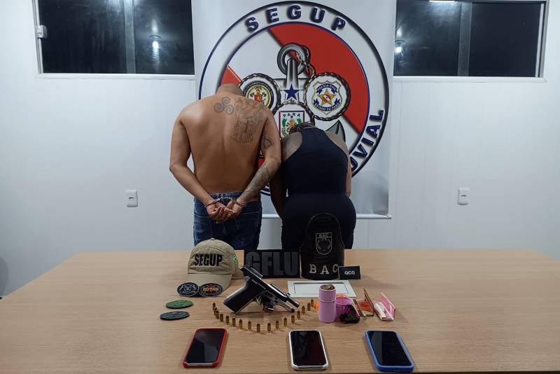 Agentes de segurança prenderam em flagrante, na última quarta-feira (24), um casal que transportava drogas, e apreenderam uma arma calibre .380, munições, carregador e celulares, em uma embarcação que saiu de Macapá, capital do Amapá, com destino a Belém. A ação foi realizada pela equipe da Base Fluvial Integrada "Antônio Lemos", em Breves, município do Arquipélago do Marajó.