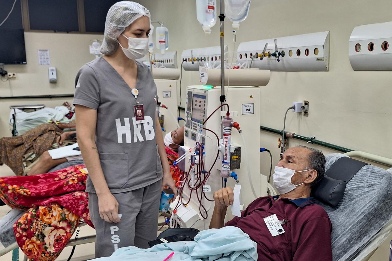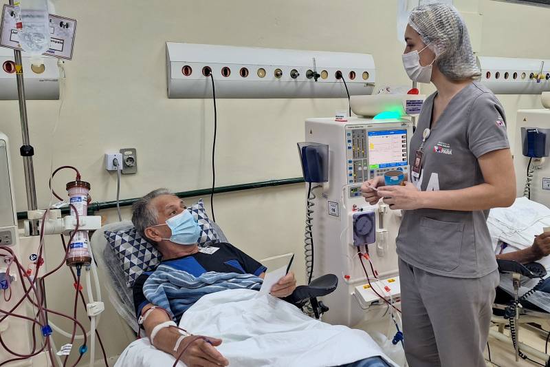 Há dois anos, o seu Jeferson Brelaz, 59 anos, saiu do município de Juruti, no oeste do Pará, para fazer tratamento de hemodiálise no Hospital Regional do Baixo Amazonas Dr. Waldemar Penna (HRBA), em Santarém, também na região oeste do Estado. Além de mudar de cidade, ele teve que se adequar à rotina de sessões três vezes na semana, que é fundamental para a saúde de um paciente renal crônico.