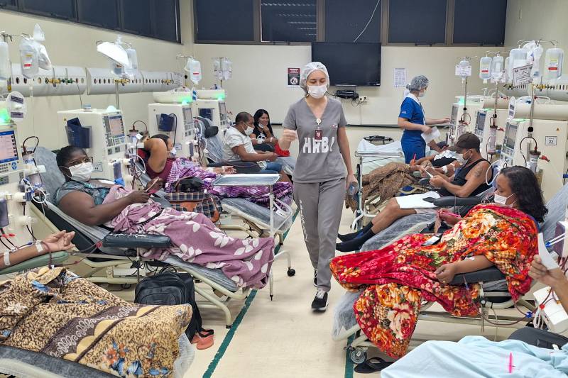 Só no ano passado, a unidade realizou 30.400 sessões de hemodiálise, que consiste na ação de máquinas para a filtragem do sangue, retirando líquidos e toxinas, como ureia e creatinina. Uma média de 2.500 atendimentos por mês aos pacientes renais crônicos. As sessões são realizadas em quatro turnos, durante seis dias da semana.