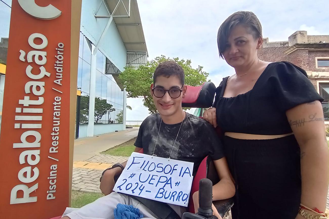 "Uma pessoa com deficiência, que nasceu aos cinco meses e disseram que o meu filho não teria expectativa de vida pelas circunstâncias, segundo os médicos à época. Se ele sobrevivesse, seria apenas uma pessoa em estado vegetativo. Mas superou, e hoje, ver o meu filho entrando em uma universidade pública precocemente, não consigo descrever em palavras a emoção que estou sentindo e o orgulho", comemora Alexandra Nobre, de 42 anos, a aprovação do filho e usuário do Centro Integrado de Inclusão e Reabilitação (CIIR), Lucas Nobre, 17 anos, no vestibular da Universidade Estadual do Pará (UEPA), divulgada nesta sexta-feira (26).
