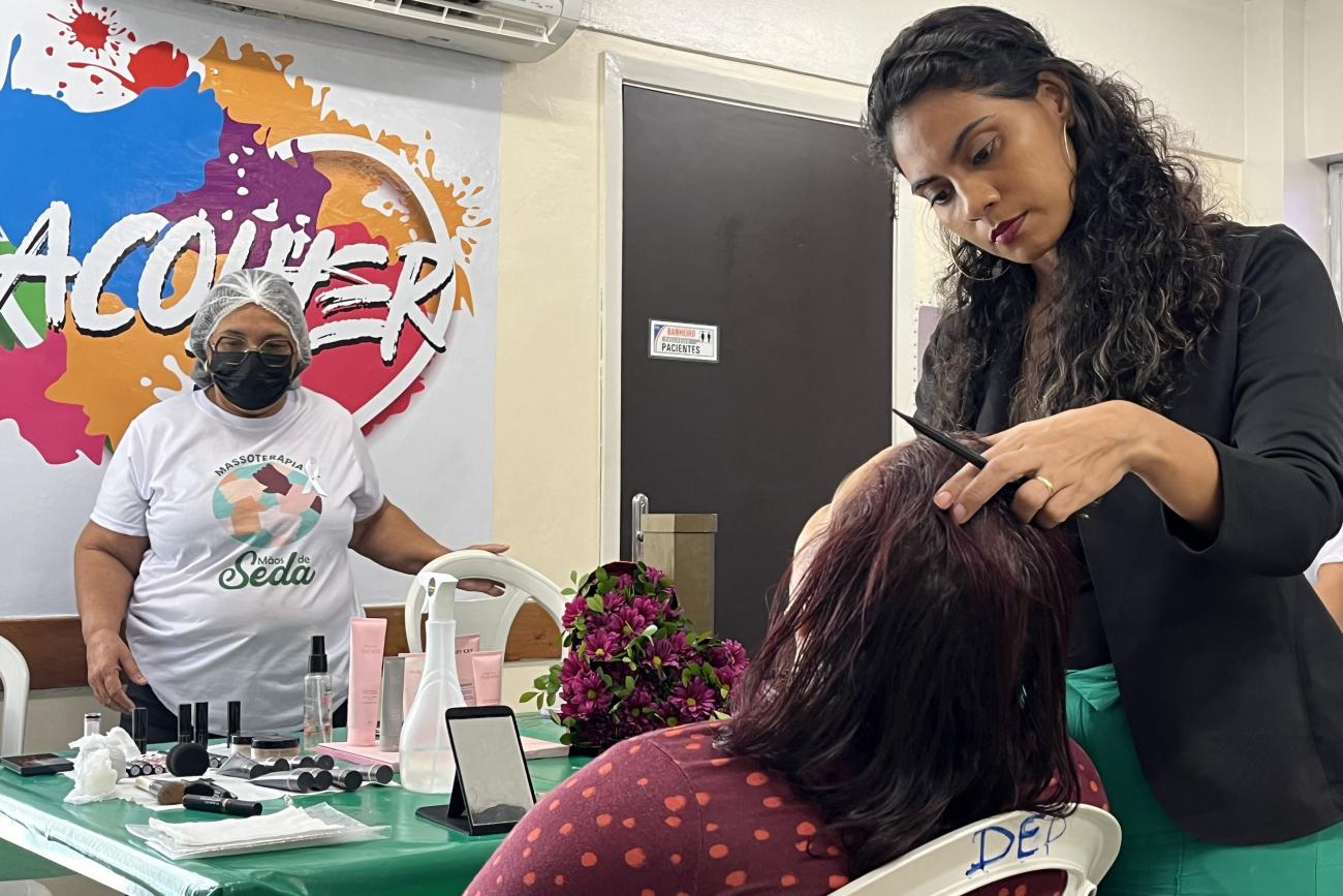 A aposentada Dalva Brito, de 69 anos, aprovou a iniciativa. Diagnosticada com uma neoplasia maligna e, após a realização de alguns exames, foi conferir a programação. "Gosto de vir aqui no Espaço Acolher. Já participei de uma ação de embelezamento, fiz a minha sobrancelha, cortei o cabelo e minha filha amou quando viu o resultado. Isso faz muito bem para a gente", afirmou Dalva.