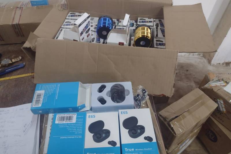 Foi realizada a contagem física da mercadoria e a fiscalização identificou 240 unidades de fones de ouvido e 300 unidades de mini caixas de som bluetooth em 14 caixas sem certificado de homologação, e com valor bem abaixo ao preço de mercado.