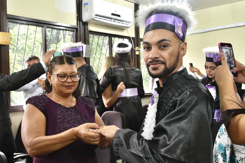 Emocionada, a formanda Alzira Naiane, de 24 anos, relembra o início de sua trajetória e da importância do Forma Pará em sua vida.“ Quando eu entrei no curso, estava com 19 anos e foi a realização de um sonho que agora está se concretizando com a formatura, um momento muito especial estar com a família, os professores e toda a direção do curso. Foi realmente um sonho. O programa Forma Pará foi muito importante para mim, principalmente porque eu sou de Mosqueiro e o curso foi todo realizado no distrito . Muitas vezes, a gente não tem tantas condições para se deslocar até Belém e ele sendo em Mosqueiro foi mais prático e acessível para a gente. O Forma Pará me trouxe essa possibilidade de ter um curso superior”, disse.