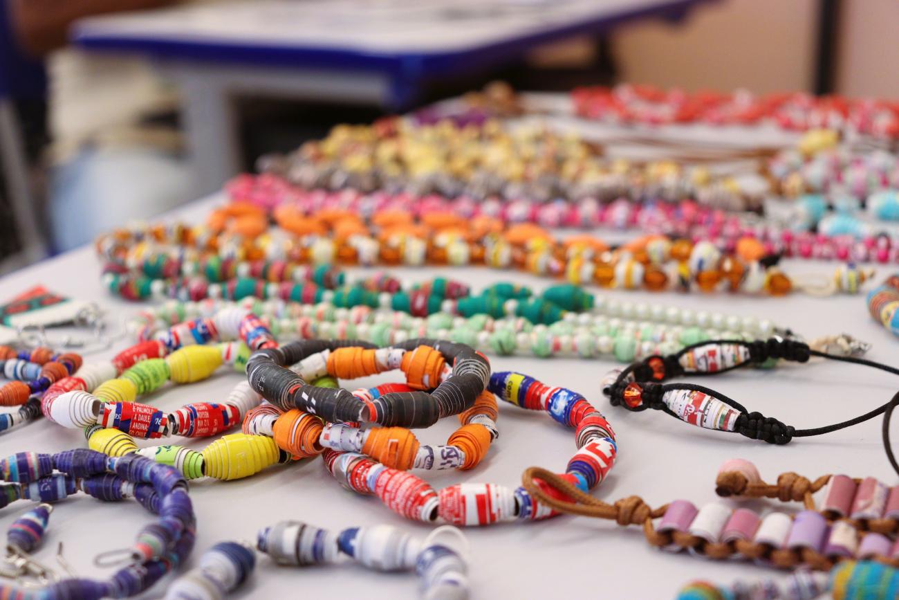 A atividade reuniu 21 moradoras do entorno da UsiPaz do bairro onde elas aprenderam a fazer colares, pulseiras e brincos. O curso também estimula a geração de renda com a comercialização das peças