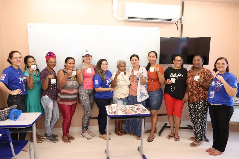 Moradoras do bairro da Terra Firme recebem oficina de ecobijuterias promovida pela Semas