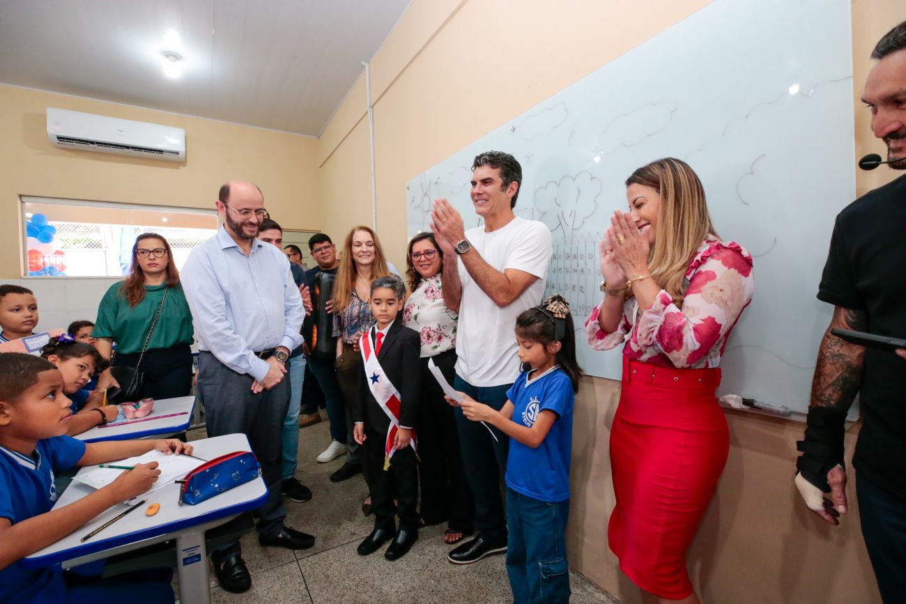 O compromisso da gestão com a qualidade da educação pública foi mais uma vez reforçado com a reconstrução da Escola Stélio Maroja. O planejamento do governo do Estado é continuar avançando em melhorias, afirmou o governador Helder Barbalho. "O fundamental é que possamos, cada vez mais, investir, melhorando a infraestrutura das nossas escolas. Só nesta semana é a terceira escola que estamos entregando. No dia de hoje, duas escolas em Belém, voltando das férias com escolas reconstruídas, um ambiente escolar melhor, com material pedagógico, professores motivados, bem assistidos e, acima de tudo, nosso alunado. A comunidade escolar é envolvida para que esse movimento em favor da educação possa ter, em 2024, muitas vitórias. Já tivemos em 2023 avanços extraordinários. Estamos absolutamente certos de que este ano que se inicia será um ano de inclusão e educação de qualidade por todo o Pará”, destacou Helder Barbalho.e R$ 616 mil, os 260 estudantes agora podem desfrutar de salas climatizadas, carteiras e lousas novas, banheiro para pessoas com deficiência (PcDs) ampliado e uma sala de apoio pedagógico, além de um bebedouro novo, computadores para a sala dos professores e reforço na merenda escolar.