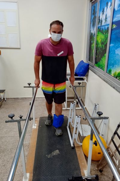 O aposentado, Manoel Ferreira Carlos, morador de Marabá, de 55 anos, tem frequentado sessões de fisioterapia na unidade do governo do Pará, há aproximadamente um ano. Ele está em processo de recuperação após uma cirurgia para tratar um tumor, enfrentando as limitações de movimento deixadas pela doença como sequela.