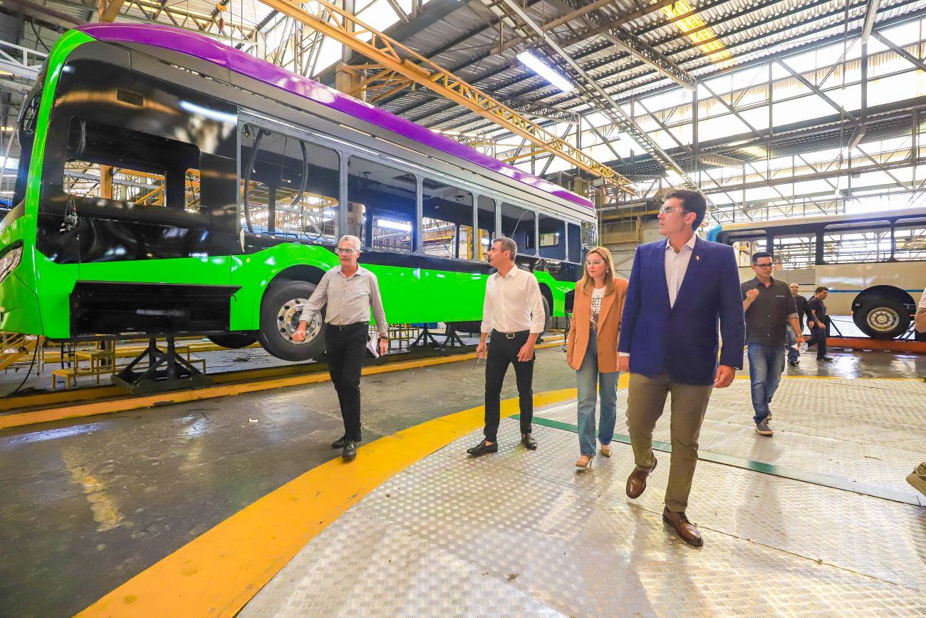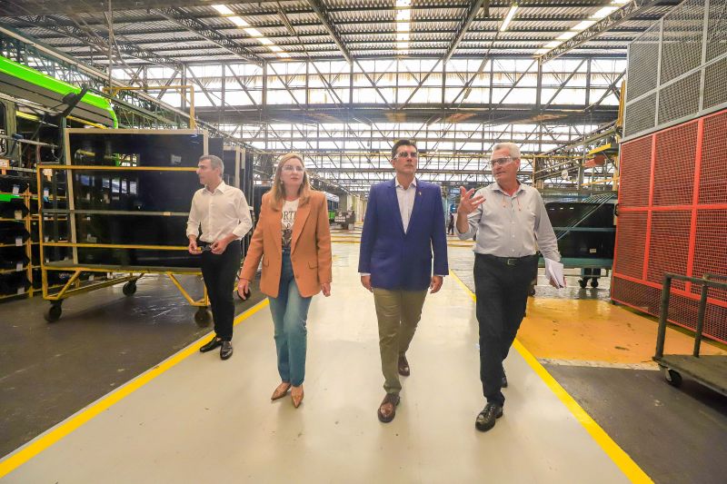 Governador Helder Barbalho e vice-governadora Hana Ghassan visitaram a fábrica na cidade de Botucatu, no interior de São Paulo, onde os ônibus serão montados