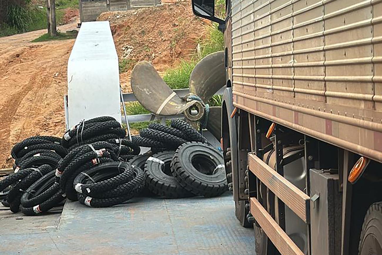 Em diversas abordagens foram apreendidos 180 pneus automobilísticos, seis botes de passeio, 5.320 unidades de refrigerantes, 1.410 unidades de cervejas, 3.600 garrafas de água mineral, cinco toneladas de polpa de fruta congelada, 120 peças de motocicletas e chapas de aço para construção de balsas, entre outros produtos.