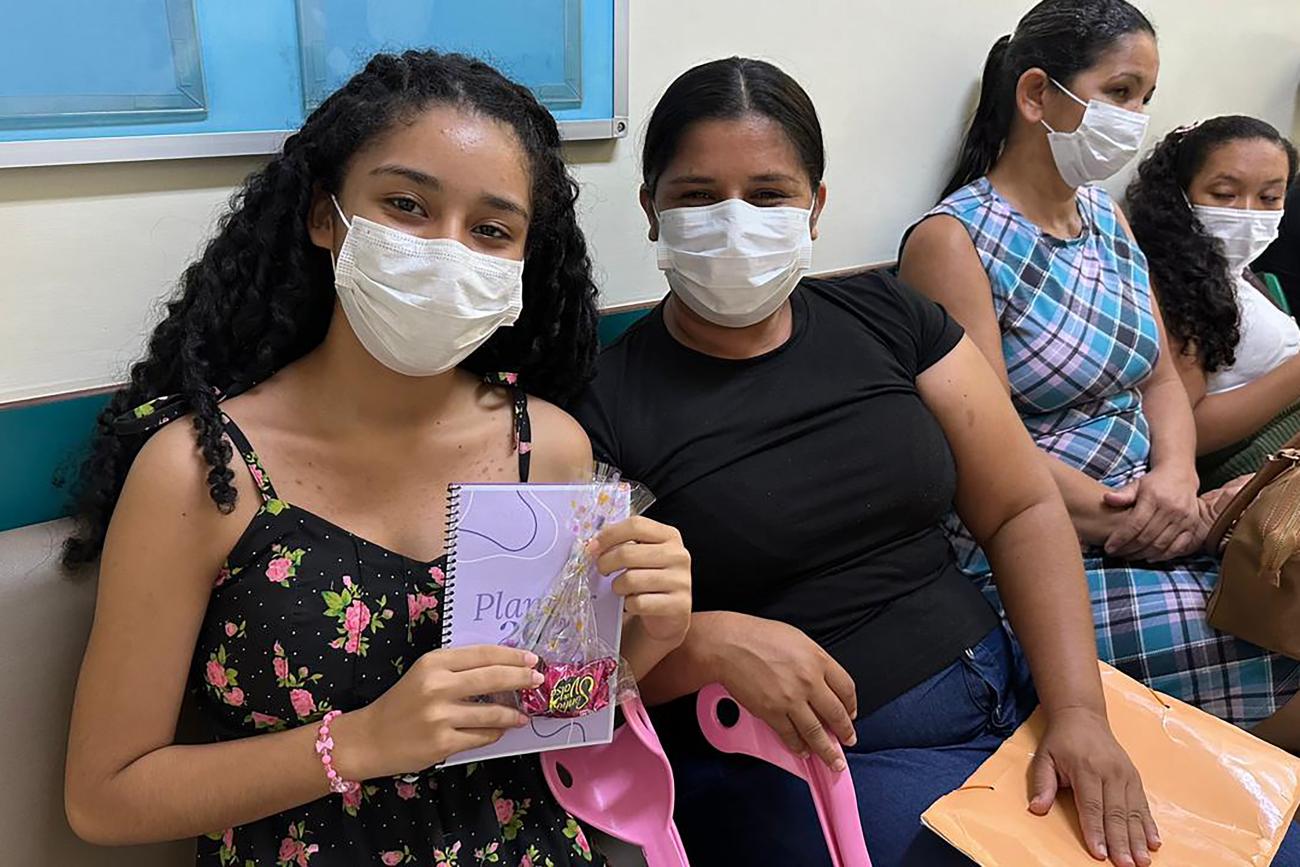Cristina e Ester agradeceram pelo apoio da equipe do HRBADurante a ação, Cristina Santos, 41 anos, compartilhou a experiência do diagnóstico de sua filha de 13 anos, Ester Santos, com osteossarcoma, em agosto de 2023. Cristina expressou sua gratidão pela equipe multidisciplinar do HRBA. "Não é fácil receber uma notícia dessa. Mas graças a Deus, tivemos todo o apoio da equipe daqui, e isso ajudou muito. Hoje, minha filha segue bem e faz o tratamento certinho", informou.