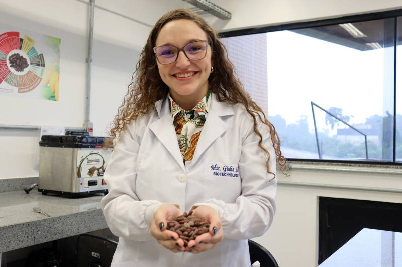 De que forma o consumo de chocolate pode influenciar a saúde de pessoas com diabetes, câncer ou Alzheimer, além de prevenir o surgimento de doenças? A pergunta foi o ponto de partida para os estudos de Giulia Lima, pesquisadora do Centro de Valorização de Compostos Bioativos da Amazônia (Cvacba), laboratório da Universidade Federal do Pará (UFPA) e instalado no Parque de Ciência e Tecnologia (PCT) Guamá. A pesquisa busca avaliar a quantidade de compostos benéficos presentes no cacau paraense e em seus subprodutos, como chocolate, manteigas, chás, entre outros.