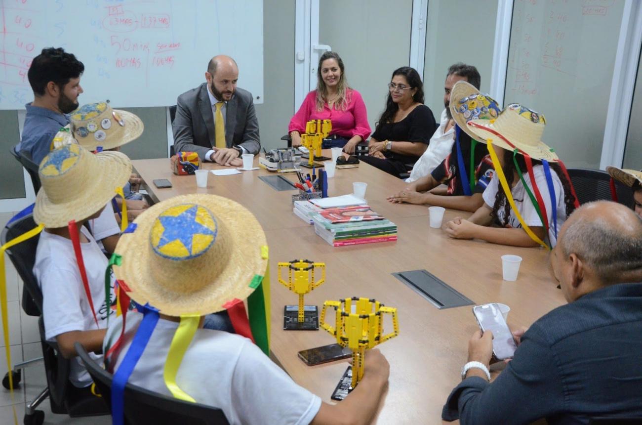 Classificados para torneio nacional de robótica, estudantes da rede pública são recebidos pelo titular da Seduc