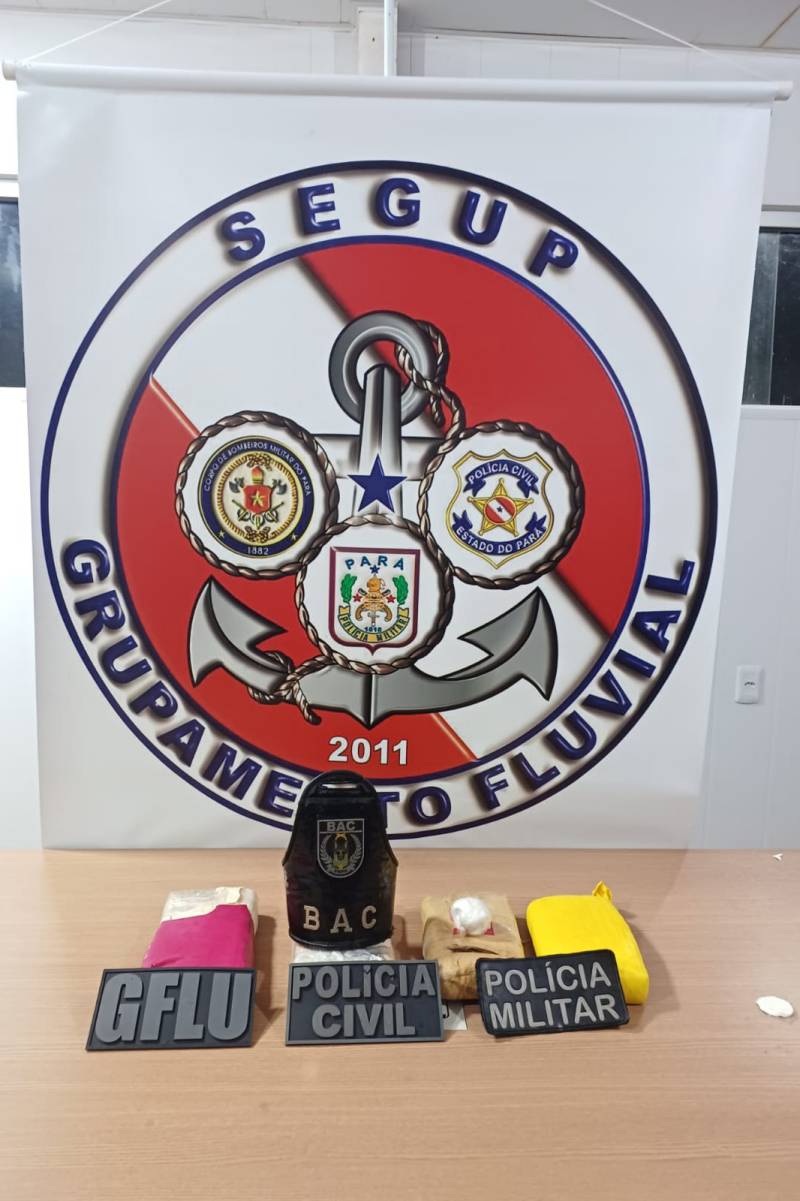 Ação integrada realizada pelos agentes de Segurança Pública, que atuam na Base Fluvial de Antônio Lemos, resultou na prisão em flagrante de um homem que transportava 4 tabletes de maconha e uma porção de cocaína, na noite da última terça-feira, 06, em uma embarcação que saiu de Manaus, no Amazonas, com destino a Belém. A ação ocorreu no estreito de Breves, no Rio Tajapuru.