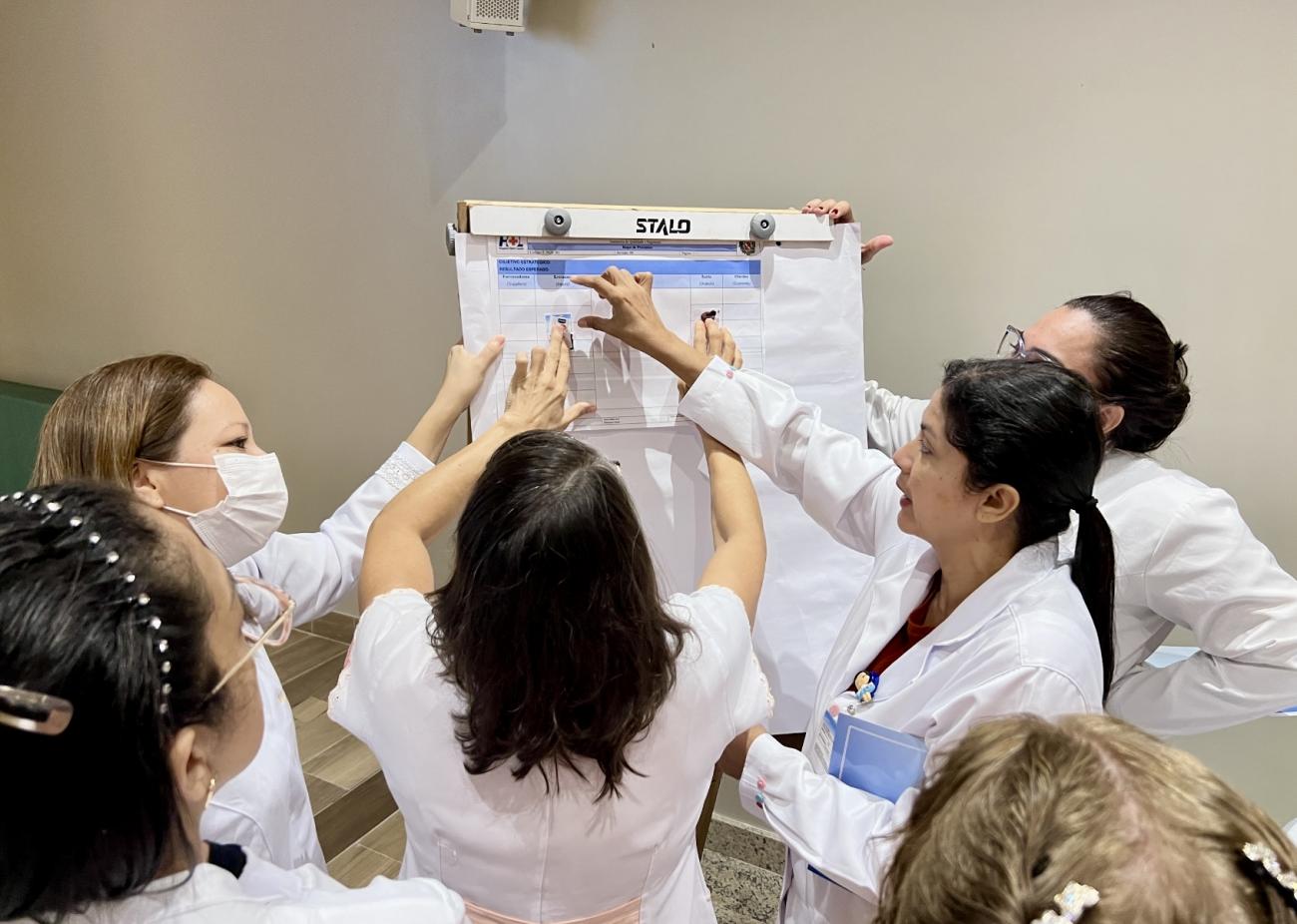 De acordo com a gerente de Qualidade, enfermeira Camila Negrão, a capacitação desenvolveu habilidades para elaboração dos processos institucionais, fomentando a cultura de segurança no Hospital. “Além da Sipoc, apresentamos outras ferramentas de gestão por processo, como os diagramas de espaguete e de blocos, além dos fluxogramas. A parte teórica focou em desenvolver a competência técnica dos participantes, cujo conhecimento foi consolidado nas oficinas. Na prática, eles fizeram uma simulação de um mapeamento de processo e, por fim, deram início ao mapeamento por área”, explicou.