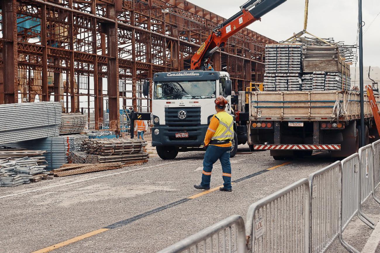 Para a execução do projeto, a estrutura metálica dos Armazéns 5 e 6 está sendo restaurada. Atualmente, está em execução o jateamento das estruturas dos galpões pré-existentes com partículas de vidro para limpar e retirar a corrosão das peças, que irão em seguida passar por pintura especial para garantir a preservação do prédio, que é histórico. O próximo passo será o fechamento das estruturas com material termo acústico para a lateral e cobertura dos galpões.
