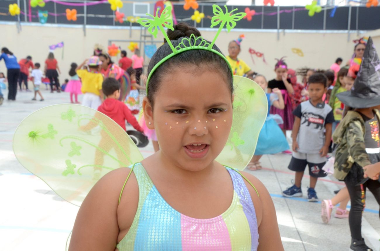 Estudante do pré II, Edite Maria dos Santos, de 5 anos.Vestida de fadinha, a estudante do pré II, Edite Maria dos Santos, de 5 anos, contou que ama o Carnaval e o bailinho foi muito bom. "Eu amo o Carnaval. Eu gosto quando a gente dança, brinca e faz as coisas. Comprei essa fantasia de fadinha porque elas fazem desejos. Aqui eu gostei que a gente pode dançar, dá para brincar, curtir e os professores são muito legais, eu amo", disse.