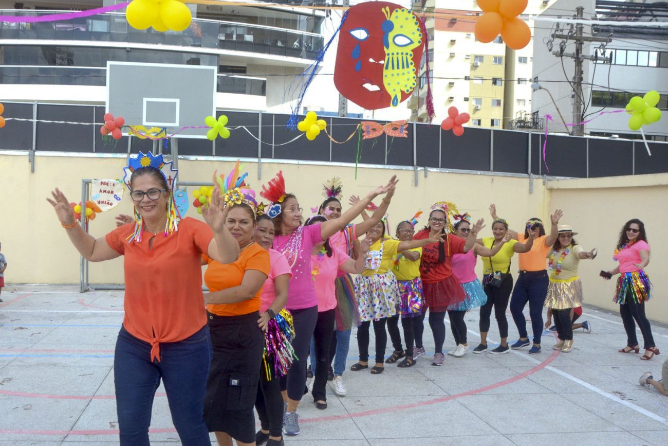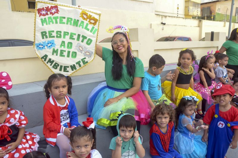 A professora do pré II, Mirain Pires, revela que as crianças estavam animadas para a programação de Carnaval, que foi trabalhada durante a semana com os pequenos. "Para nós é muito gratificante ver a alegria das crianças. Passamos a semana inteira trabalhando o Carnaval com as crianças e elas ficam super animadas e nós também. É maravilhoso poder proporcionar um momento de alegria, de socialização com as demais, todos unidos para brincar aqui na quadra", disse.