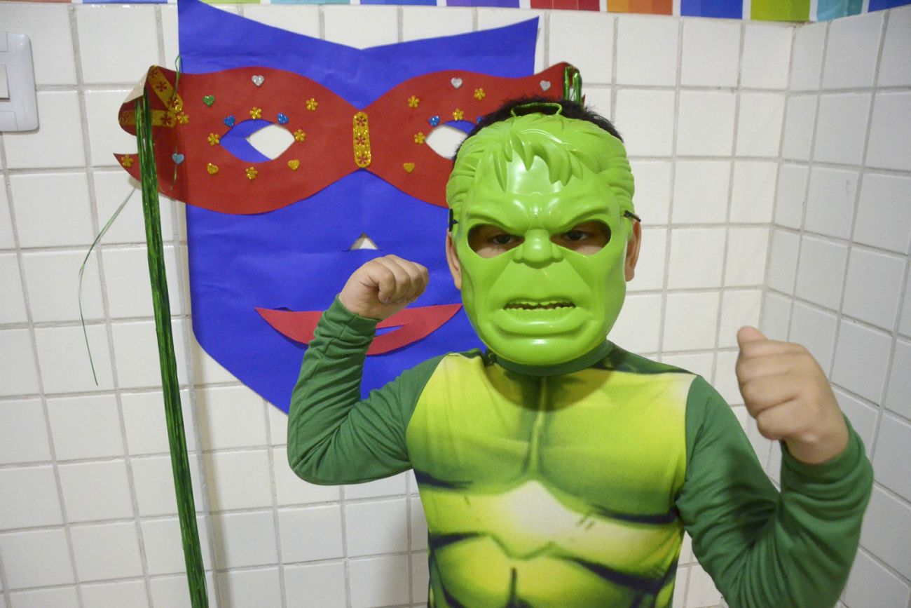 Já Gustavo Gonçalves, de 5 anos, estudante do pré II, escolheu a fantasia de Flash e estava animado para aproveitar as brincadeiras. "A festa é divertida, dá para correr e brincar. Minha fantasia é de Flash e o que ele faz é correr. Aqui eu gosto mais da brinquedoteca porque tem brinquedos", afirmou.
