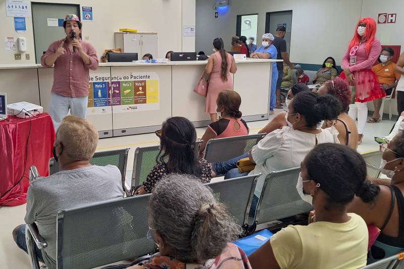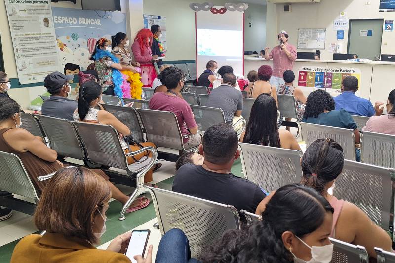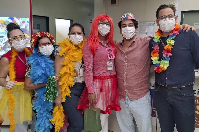 Selma de Sousa Pinto, 60 anos, foi ao Hospital Regional do Baixo Amazonas Dr. Waldemar Penna (HRBA), em Santarém, no Oeste do Pará, para atendimento no ambulatório de feridas da unidade. Mas a aposentada acabou entrando em um "Bloco de Carnaval" com muita alegria e informação.