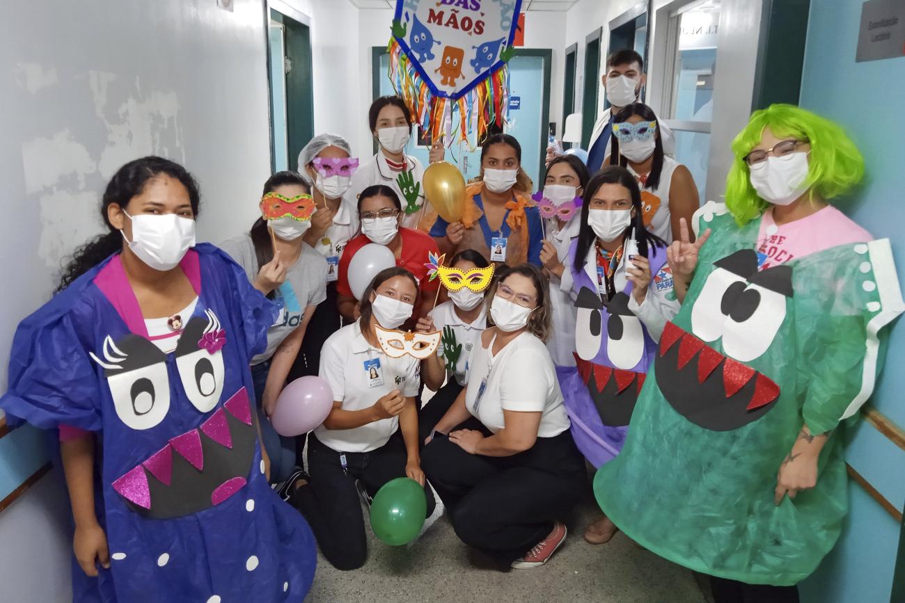 A ação, organizada pelo Serviço de Controle de Infecção Hospitalar (SCIH) e pelo Serviço de Humanização da instituição, contou com a participação de profissionais fantasiados com máscaras carnavalescas, que distribuíram materiais informativos e orientaram pacientes e colaboradores sobre a prática correta da higienização das mãos .