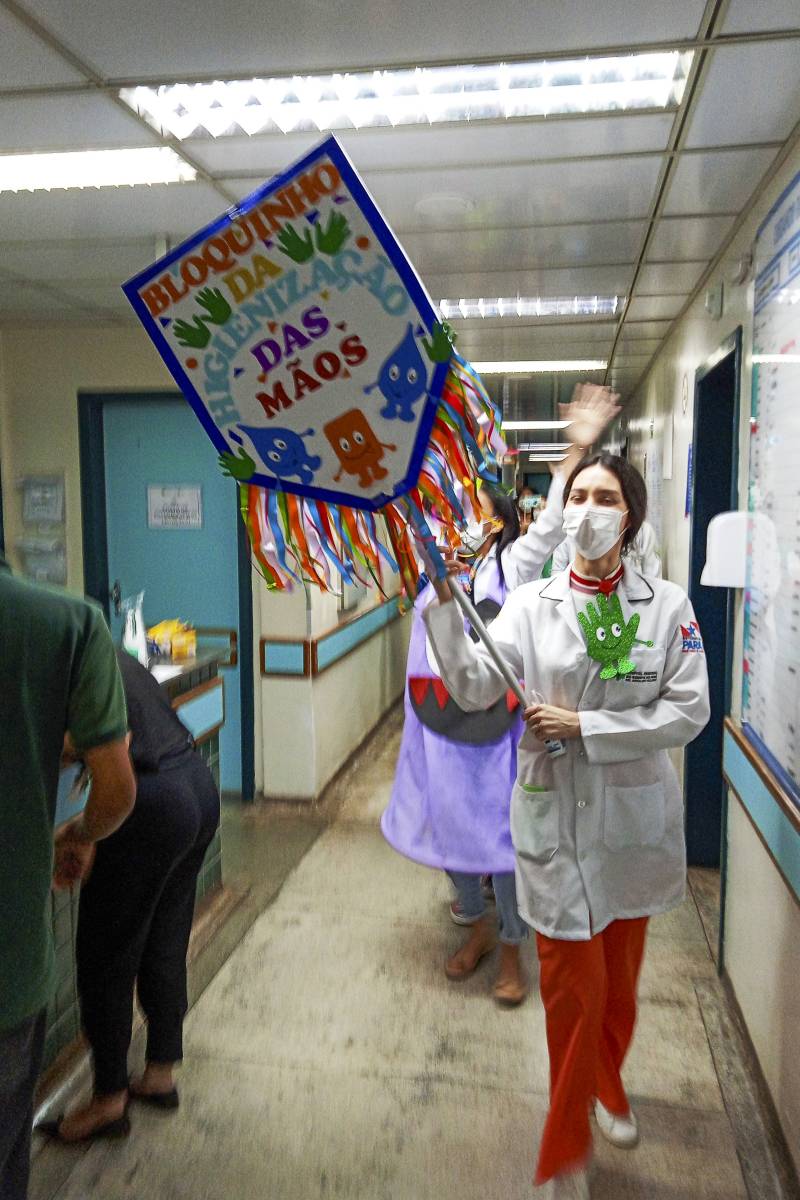 Uma iniciativa inspiradora levou alegria, música e informação aos corredores e alas do Hospital Regional do Sudeste do Pará - Dr. Geraldo Veloso (HRSP), em Marabá. Nesta sexta-feira (09), a instituição promoveu o “Bloquinho de Carnaval da Higienização das Mãos”, ação educativa voltada para a prevenção de doenças.