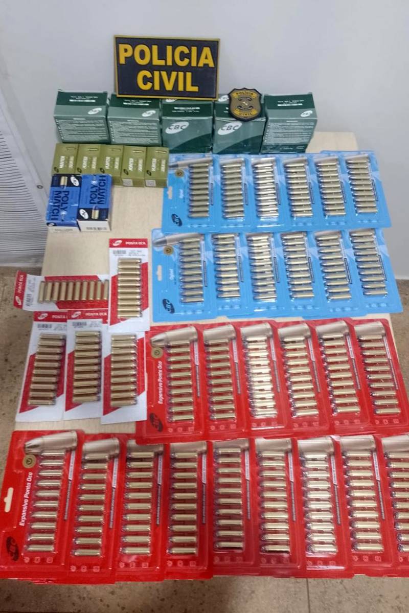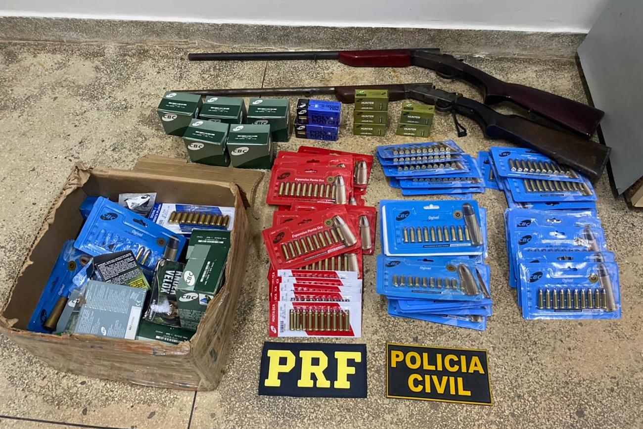Com o investigado, foram encontradas duas espingardas e mais de 2 mil munições de diversos calibres. A PCPA e a PRF, juntamente com a PM, fizeram a apreensão do material e deram voz de prisão em flagrante ao suspeito.