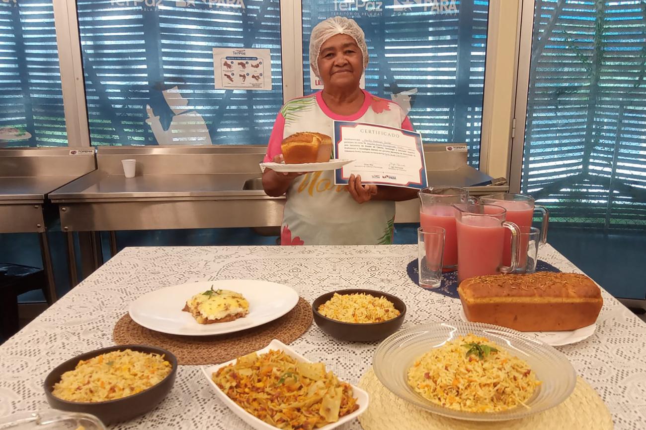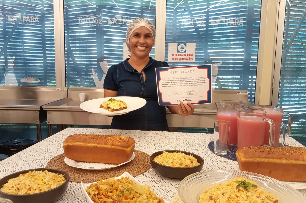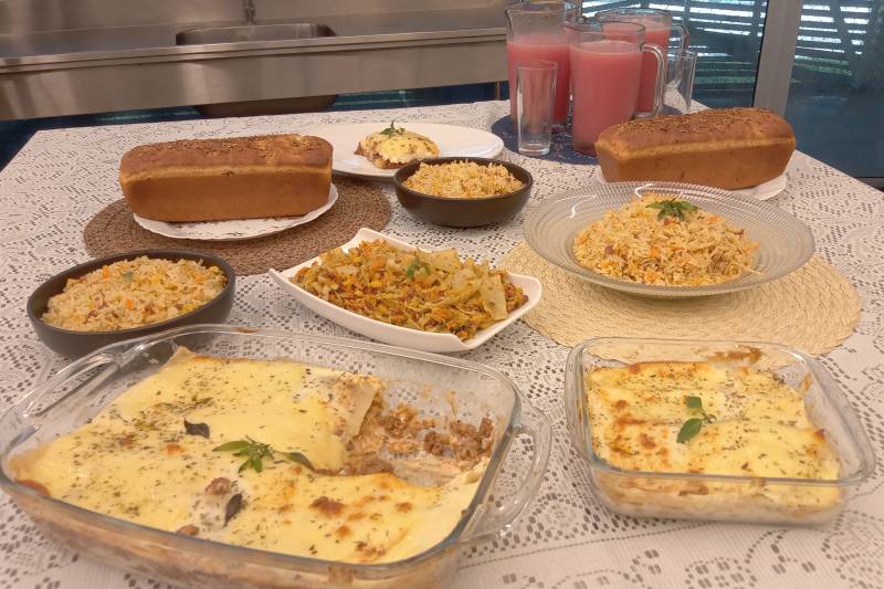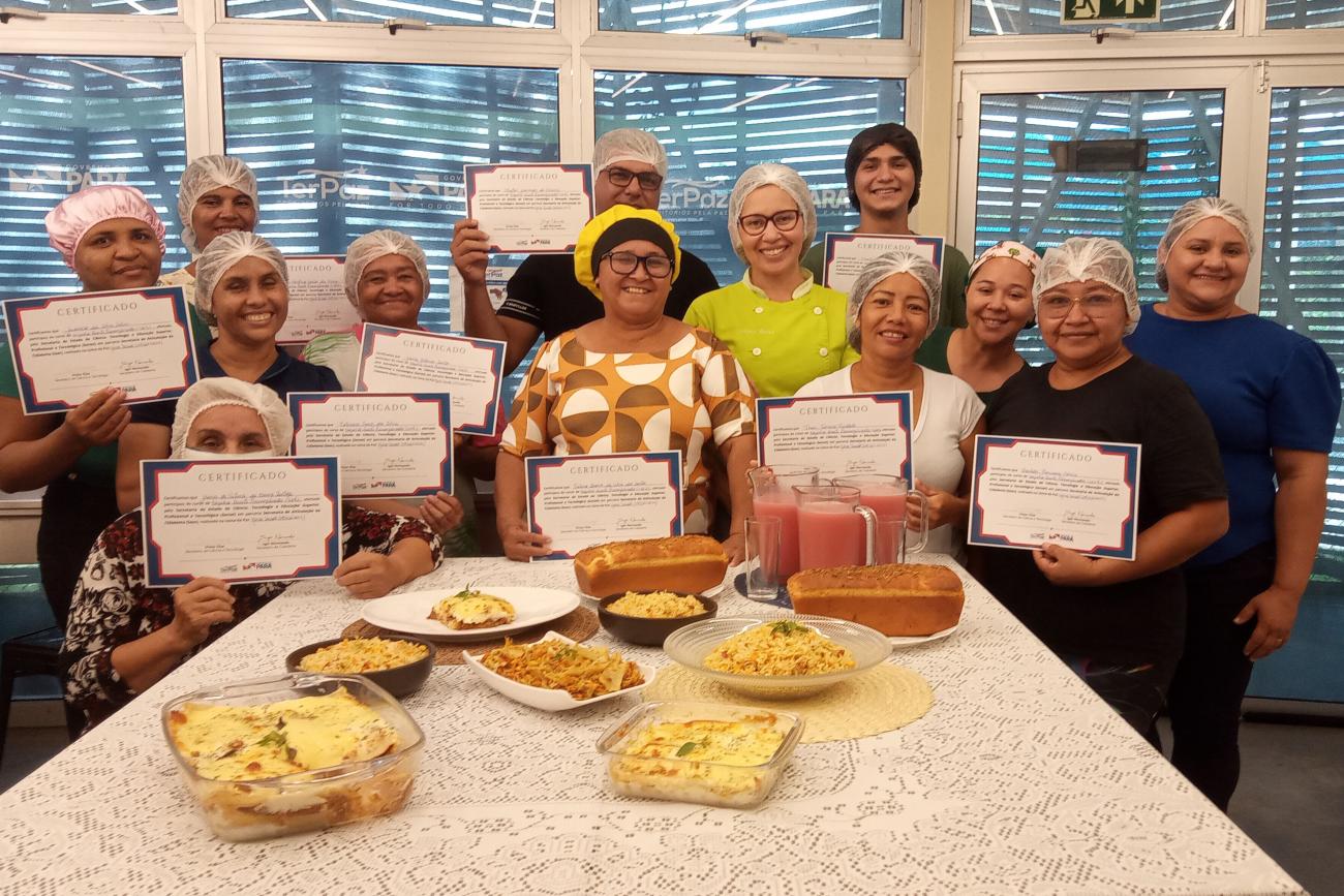 Ao longo das aulas, os alunos aprenderam a cozinhar pratos como pizza, pão caseiro, bolo, quibe, lasanha, suflê e outras receitas essenciais no dia a dia. Arina Brito, nutricionista e responsável pela capacitação das alunas da UsiPaz Antônia Corrêa, no município de Marituba (Região Metropolitana de Belém), destacou que o curso tem o objetivo de ensinar receitas e a precificar os alimentos.