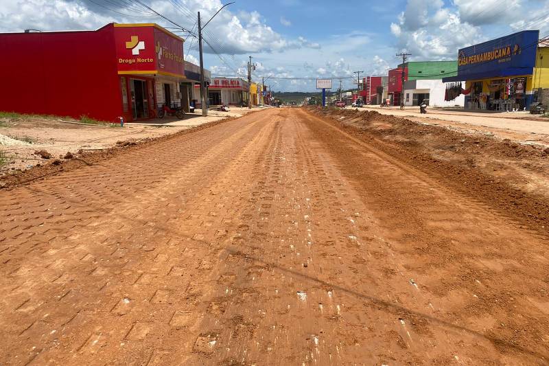 O Governo do Estado executa o asfaltamento e drenagem em vias urbanas no distrito de Castelo dos Sonhos, em Altamira, na Região de Integração do Xingu. Ao todo 6km são contemplados.