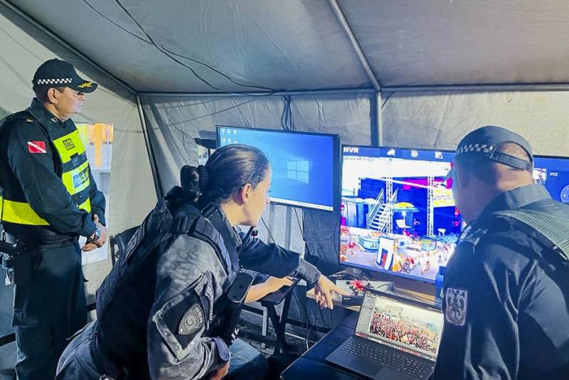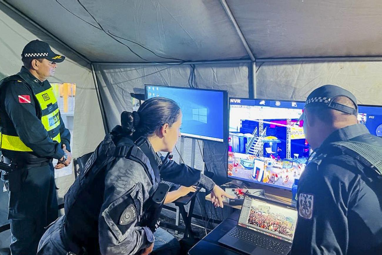 Agentes que atuam na Operação Carnaval 2024As ações no município são realizadas de forma integrada, com o monitoramento das câmeras de segurança dispostas ao longo do percurso, de um pouco mais de um quilômetro, por onde os blocos desfilam. O videomonitoramento é feito nas 24 horas, por meio do Centro Integrado de Comando e Controle regional, onde estão reunidos representantes das forças estaduais e municipais, com o objetivo de garantir mais agilidade e celeridade diante das ocorrências.