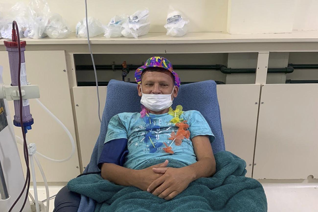 Aprovação – Deddmax Serrão, de 37 anos, é um dos usuários do serviço de hemodiálise que participou do "Bloco da Hemo". Ele enfatiza a importância de atividades como esta no contexto hospitalar, destacando que o baile realizado ajudou os pacientes que participaram e entraram no clima do carnaval a se distraírem durante o tratamento. "Foi muito importante, graças a Deus, seguimos firmes no tratamento e essa iniciativa tem um impacto positivo para nós, pacientes, nos ajudando a descontrair", disse o beneficiário.