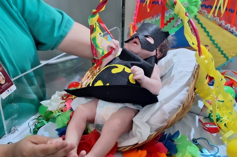 As crianças foram fantasiadas com personagens animados, como Batman, Capitão América, Supergirl e Tartaruga Ninja. O “Neo na Folia” ainda contou com um leito todo customizado para as fotos, que foram entregues às famílias dos bebês como recordação.